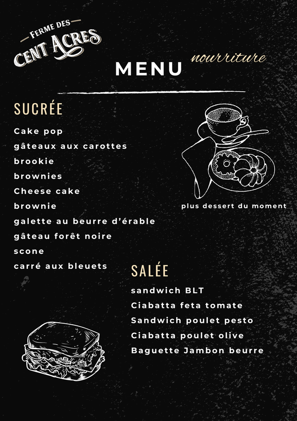 Venez prendre le temps d’un latté à l’érable, d’un cappucino ou d’un thé le tout accompagné d’une pâtisserie tout en pouvant vous procurer des produits issus du terroir québécois.